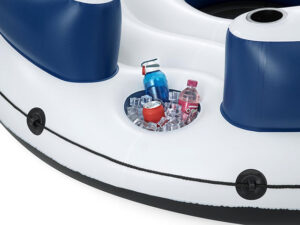 Lazy dayz eiland is een drijvend eiland voor 4 personen (max. gewicht 360 kg) met vier rugleuningen en elk een ingebouwde bekerhouder.